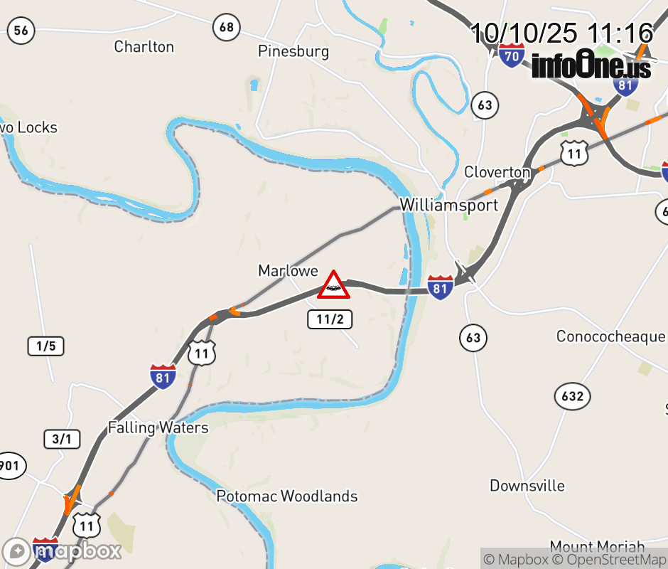 Canceled 10/10/25 1:24 PM Location: I-81 at MM 25.0, WV Accident.