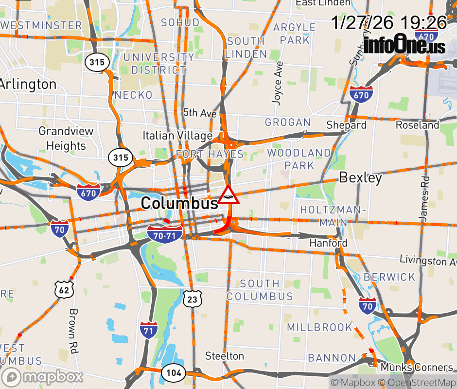 The left shoulder is blocked on I-71 South at US-40/Broad St, due to a crash. ![]() |