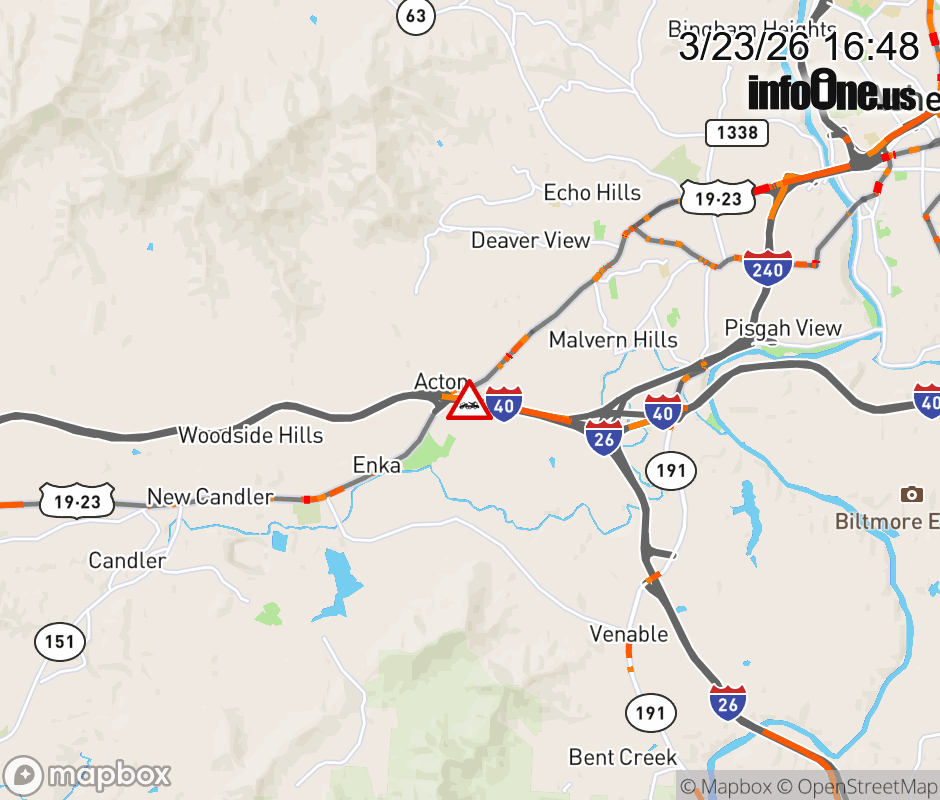 The right lane is closed before Exit 44, US 19 (Smokey Park Hwy) ![]() |