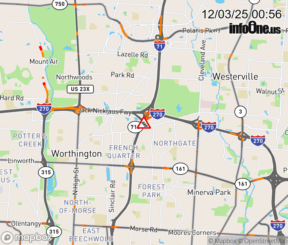 All lanes are closed on I-71 North at I-270 (North Side), due to repairs/maintenance. Updated: Wed 12/3/25 12:56 AM EST ![]() Updated: Wed 12/3/25 12:56 AM EST |