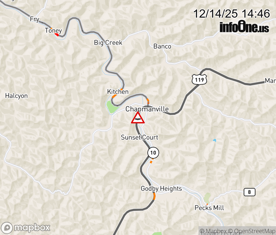 Canceled 12/14/25 6:24 PM Location: US-119 at MM 15.0, WV Accident.