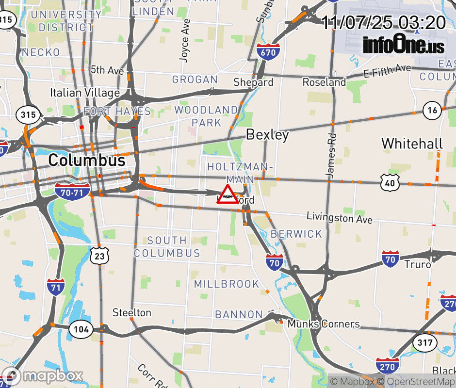 The left lane is blocked on I-70 East beyond Miller Ave/Kelton Ave, due to a crash. Updated: Fri 11/7/25 3:20 AM EST ![]() Updated: Fri 11/7/25 3:20 AM EST |