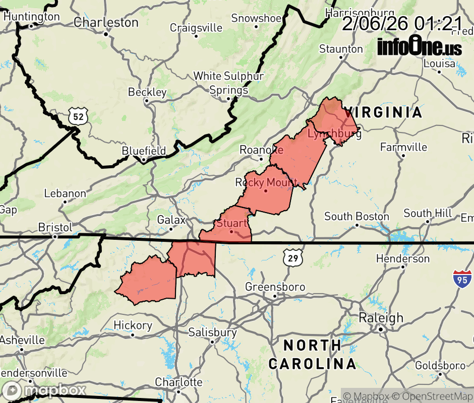 Canceled 2/6/26 12:43 PM Wind Advisory issued February 6 at 1:20AM EST until February 7 at 7:00PM EST by NWS Blacksburg VA * WHAT... Northwest winds 20 to 30 mph with gusts up to 50 mph expected. * WHERE... In North Carolina, Surry and Wilkes Counties. In Virginia, Amherst, Bedford, Patrick, and Franklin Counties. * WHEN... From 7 PM this evening to 7 PM EST Saturday. * IMPACTS... Gusty winds will blow around unsecured objects. Tree limbs could be blown down and a few power outages may result. ![]() |