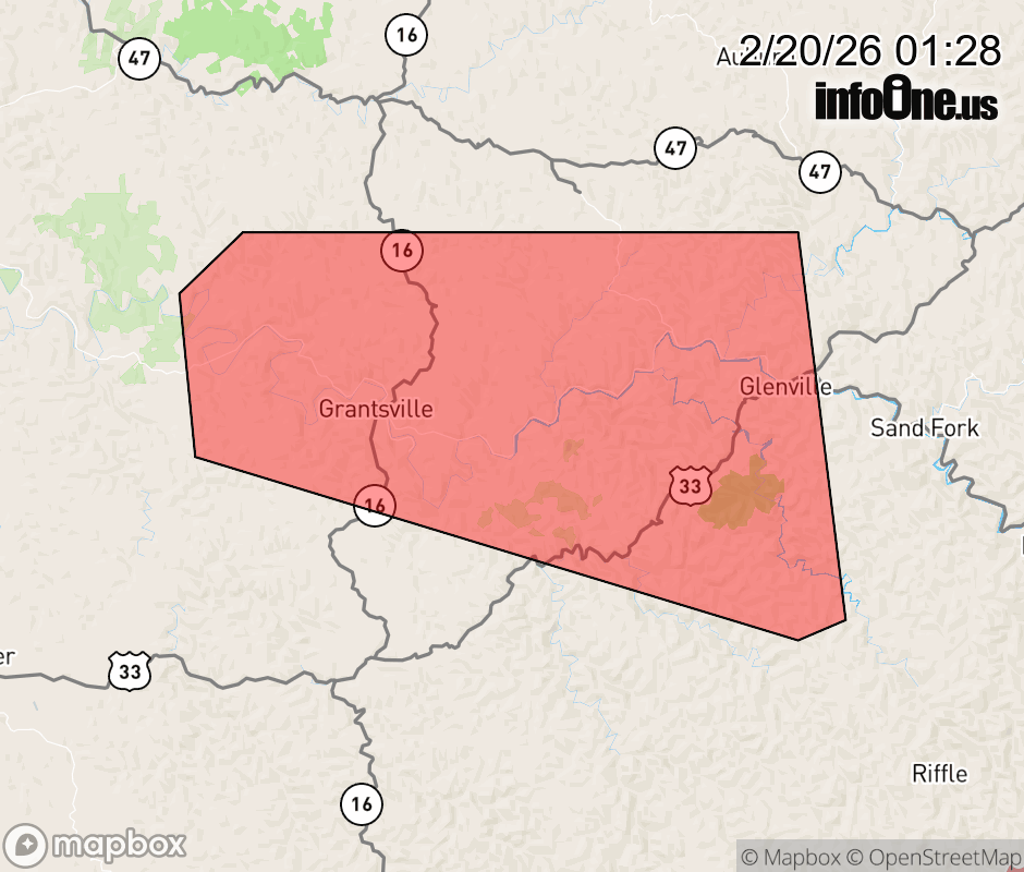 Canceled 2/20/26 1:45 AM Special Weather Statement issued February 20 at 1:27AM EST by NWS Charleston WV At 126 AM EST, Doppler radar was tracking a strong thunderstorm over Grantsville, moving east at 50 mph. HAZARD...Half inch hail. SOURCE...Radar indicated. IMPACT...Minor hail damage to vegetation is possible. Locations impacted include... Glenville, Grantsville, Cedar Creek State Park, Big Springs, Tanner, Cedarville, and Normantown. ![]() |