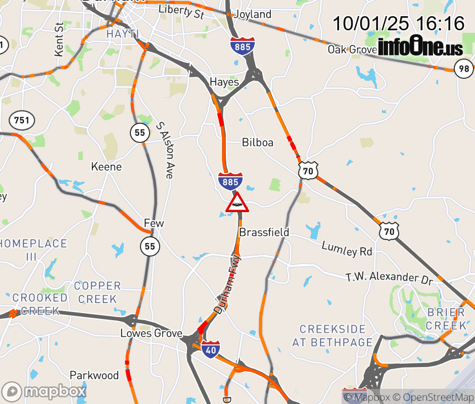Canceled 10/1/25 4:26 PM Location: I-885S at MM 8, NC Vehicle Crash.
