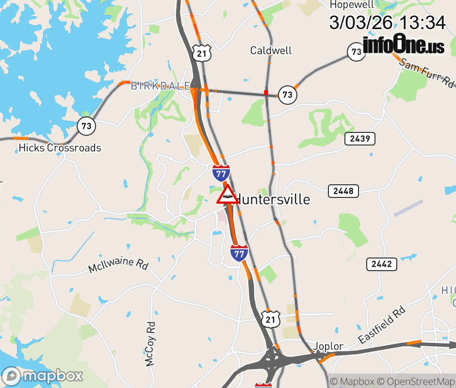 Crash on I-77 North Bound near exit 23, Gilead Rd. All lanes are blocked. Traffic is encouraged to seek alternate route. ![]() |