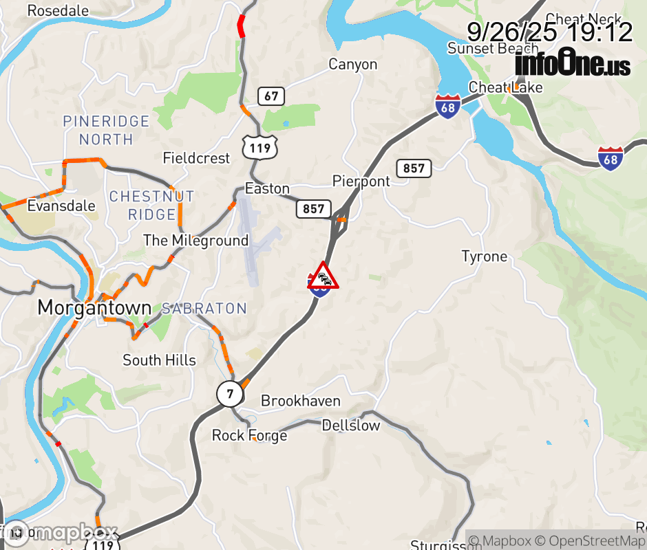 In Monongalia County there is a Vehicle Fire on I-68E at Mile Marker 6.5. ![]() |