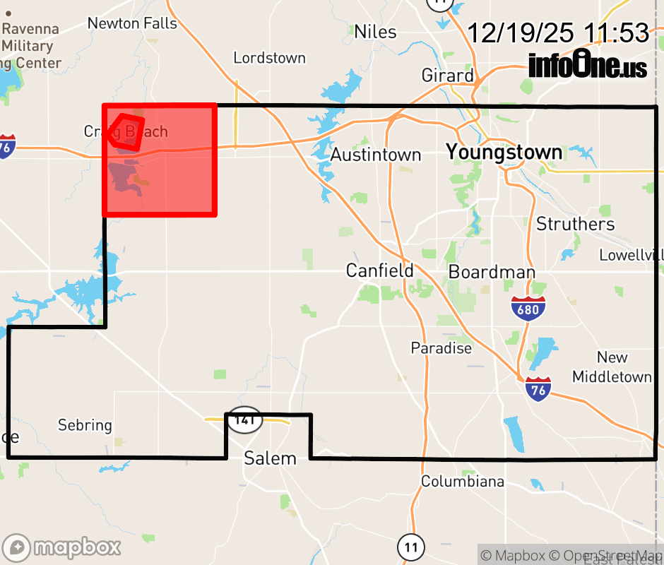 Canceled 12/19/25 2:15 PM Mahoning County has 1 power outage affecting 2 customers. Ohio Edison 2 without power Milton Township: Customers affected: 19 (1%) Estimated repair: Fri 2:30 PM Updated: Fri 12/19/25 1:54 PM EST ![]() Updated: Fri 12/19/25 11:53 AM EST |