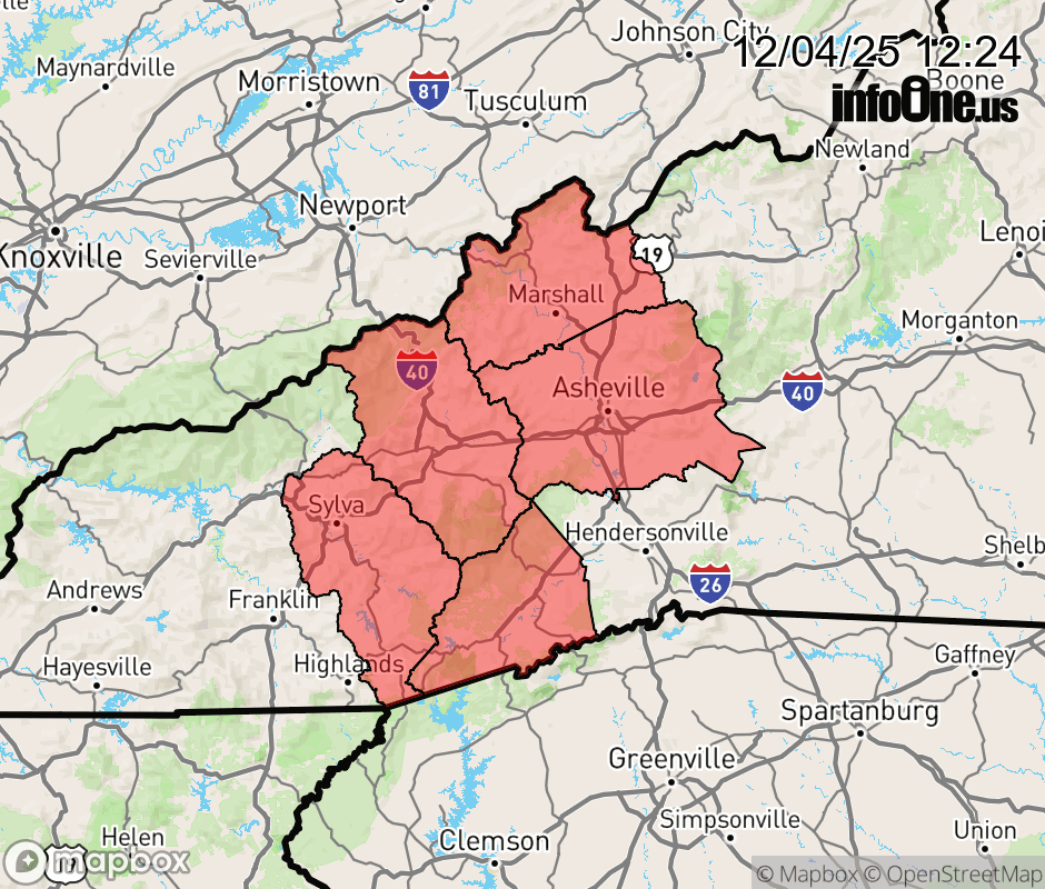 Winter Weather Advisory issued December 4 at 12:23PM EST until December 5 at 10:00AM EST by NWS Greenville-Spartanburg SC * WHAT... Mixed precipitation expected above 3500 feet. Total snow accumulations up to one inch and ice accumulations around two tenths of an inch. * WHERE... Elevations above 3500ft in Jackson, Haywood, Transylvania, Buncombe, and Madison Counties. * WHEN... From 7 PM this evening to 10 AM EST Friday. * IMPACTS... Snow and ice accumulations will make many roads treacherous and impassable. The weight of the snow and ice on tree limbs and power lines could produce isolated outages. The hazardous conditions could impact the Friday morning commute. ![]() |