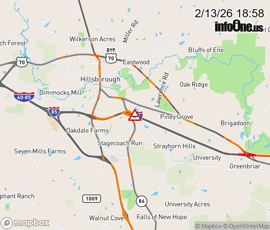 The left lane is closed at Exit 165 (NC-86). ![]() |