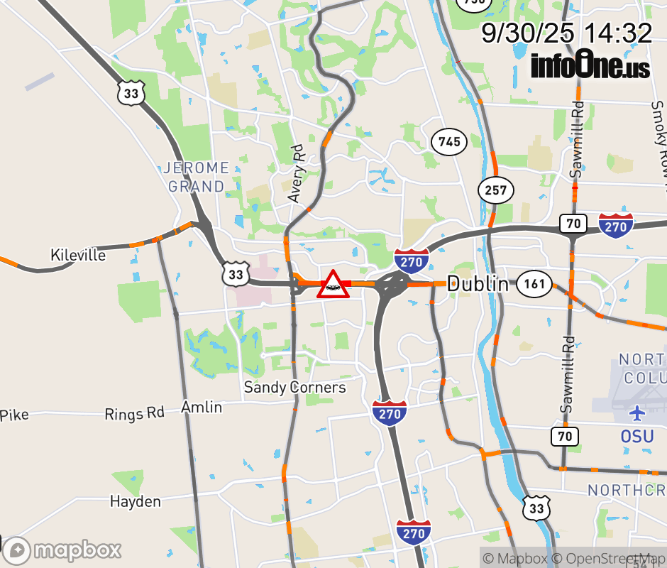 The right shoulder is blocked on US-33/SR-161 West beyond I-270, due to a crash. Updated: Tue 9/30/25 2:32 PM EDT ![]() Updated: Tue 9/30/25 2:32 PM EDT |