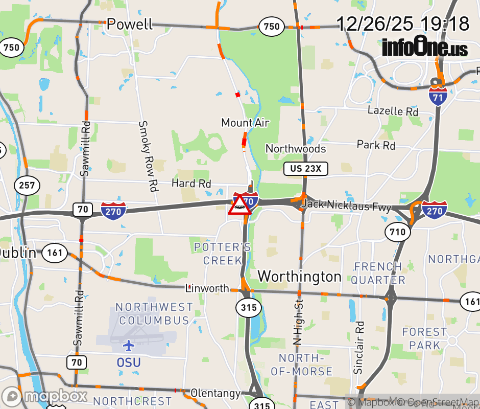 Ramp I-270 West to SR-315 South CLOSED because of a crash. ![]() |
