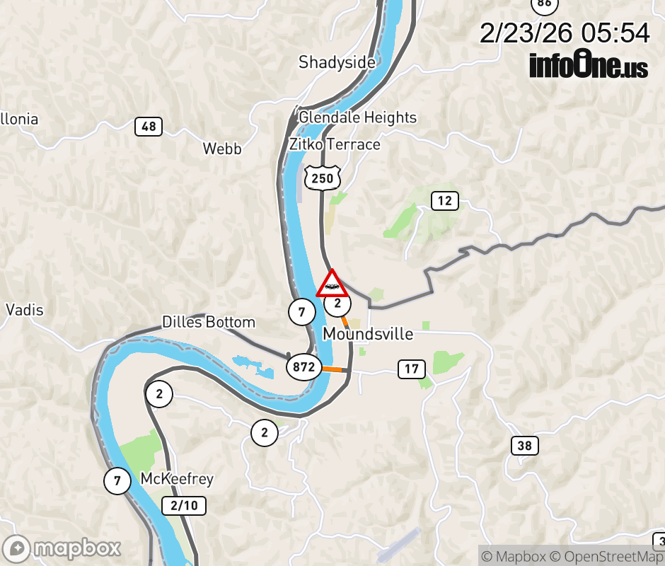 Vehicle Crash on WV-2 at Mile Marker 20.0. ![]() |