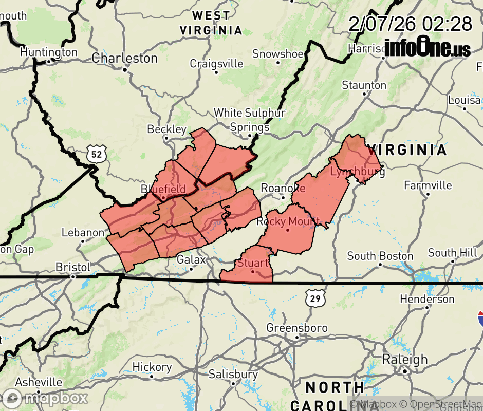 Canceled 2/7/26 9:06 AM Wind Advisory issued February 7 at 2:26AM EST until February 7 at 7:00PM EST by NWS Blacksburg VA * WHAT... For the Cold Weather Advisory, very cold wind chills as low as 16 below. For the Wind Advisory, northwest winds 20 to 30 mph with gusts up to 60 mph. * WHERE... Portions of central, south central, southwest, and west central Virginia and southeast West Virginia. * WHEN... For the Cold Weather Advisory, until 7 AM EST Sunday. For the Wind Advisory, until 7 PM EST this evening. * IMPACTS... Gusty winds will blow around unsecured objects. Tree limbs could be blown down and a few power outages may result. The cold wind chills as low as 15 below zero could result in hypothermia or frostbite if precautions are not taken. ![]() |