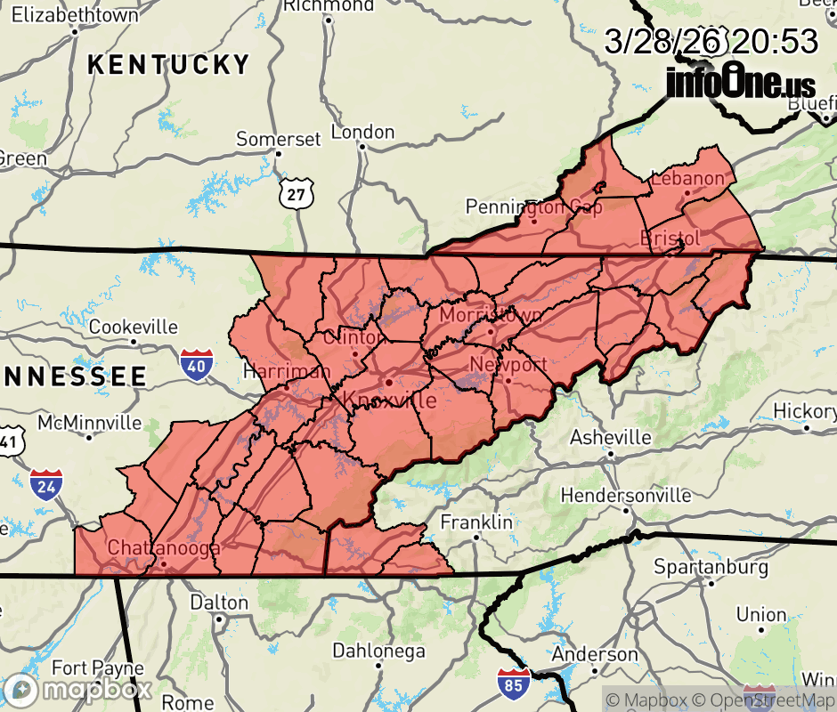 Canceled 3/29/26 8:00 PM Special Weather Statement issued March 28 at 8:52PM EDT by NWS Morristown TN Fire weather concerns exist again for midday Sunday into the evening due to a very dry airmass and breezy south to southwest winds. Relative humidity values are expected to drop into the teens and lower 20s across the whole region. Winds will gust up to 25 mph. Residents and visitors are urged to properly dispose of cigarette butts, matches, and any other flammable items in appropriate containers. Additionally, exercise caution if operating any equipment that could create sparks and keep vehicles off of dry grass. Most dry grasses, dead leaves, and other tree litter could easily ignite and spread fire quickly. Lastly, remember to obey local burn bans. ![]() |