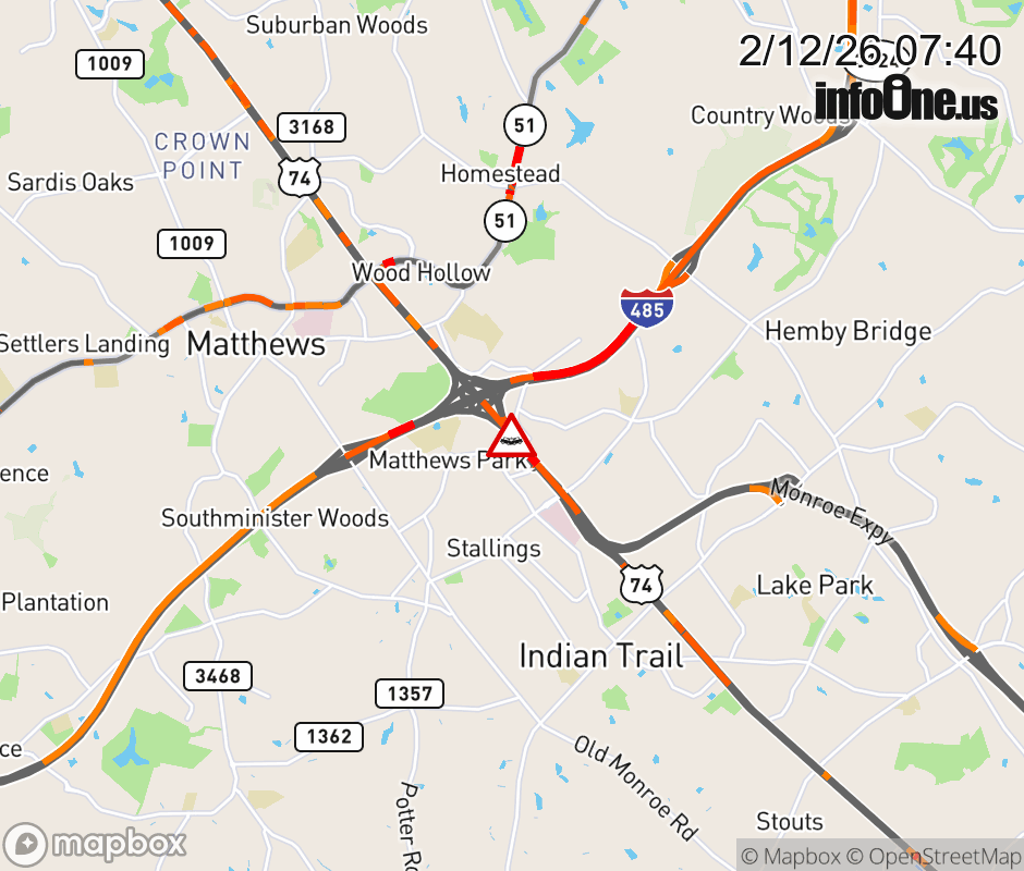 Canceled 2/12/26 7:56 AM Location: Independence Fwy (US-74W) at MM 253, NC Vehicle Crash.