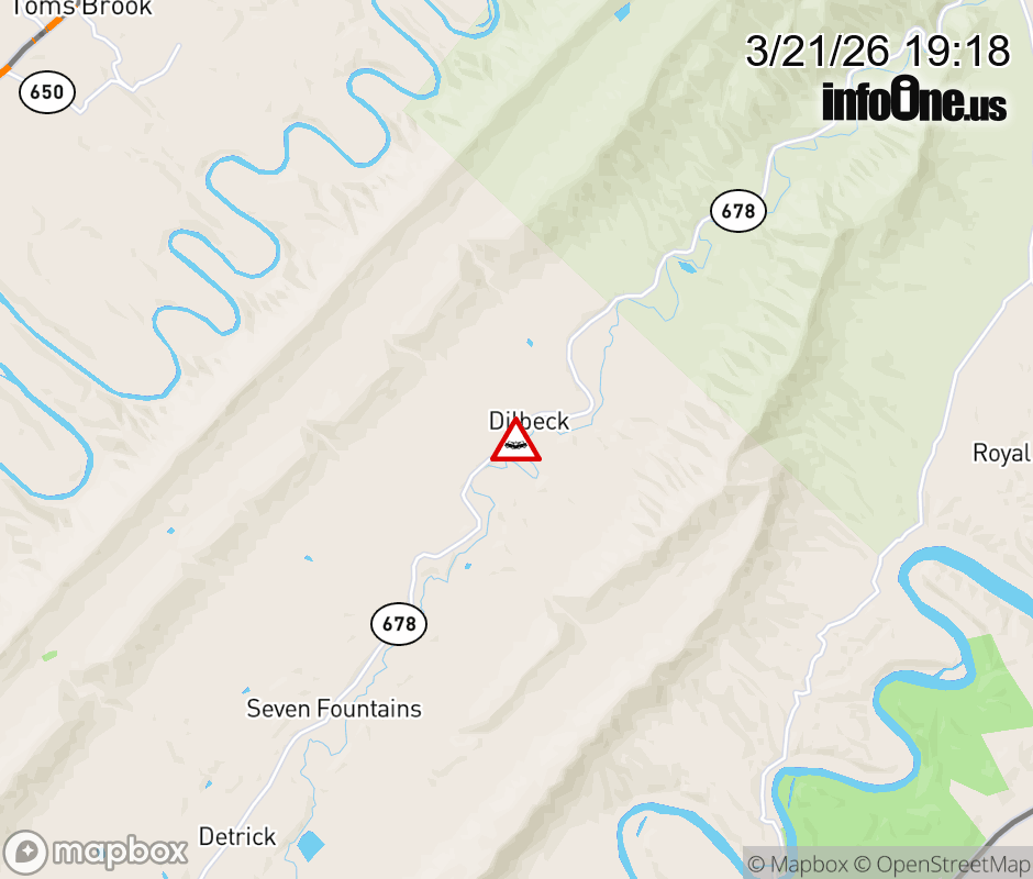 On Rt. 678 in the County of Shenandoah, in the vicinity of Ramsey Rd; Rt. 772N/S (Shenandoah County), motorists can expect delays due to a vehicle crash. All north lanes are closed. All south lanes are closed.