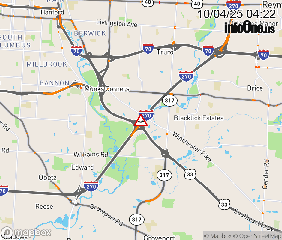 Ramp I-270 South to US-33 West CLOSED because of a crash. Updated: Sat 10/4/25 4:22 AM EDT ![]() |