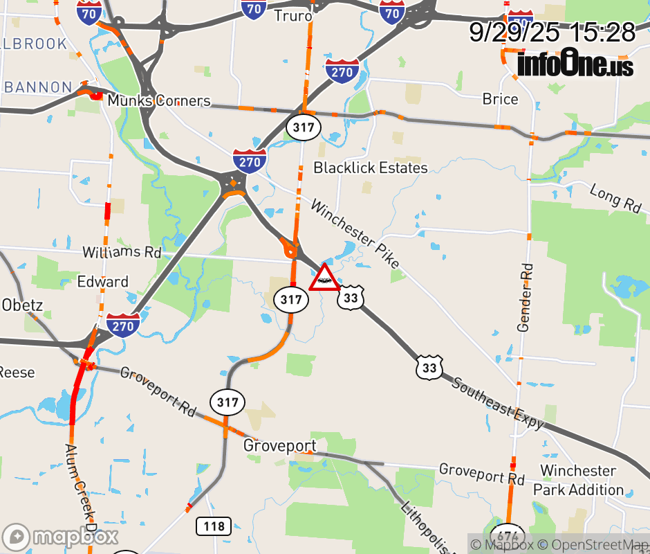 Expect lane closures on US-33 East beyond SR-317/Hamilton Rd, due to a crash. ![]() |