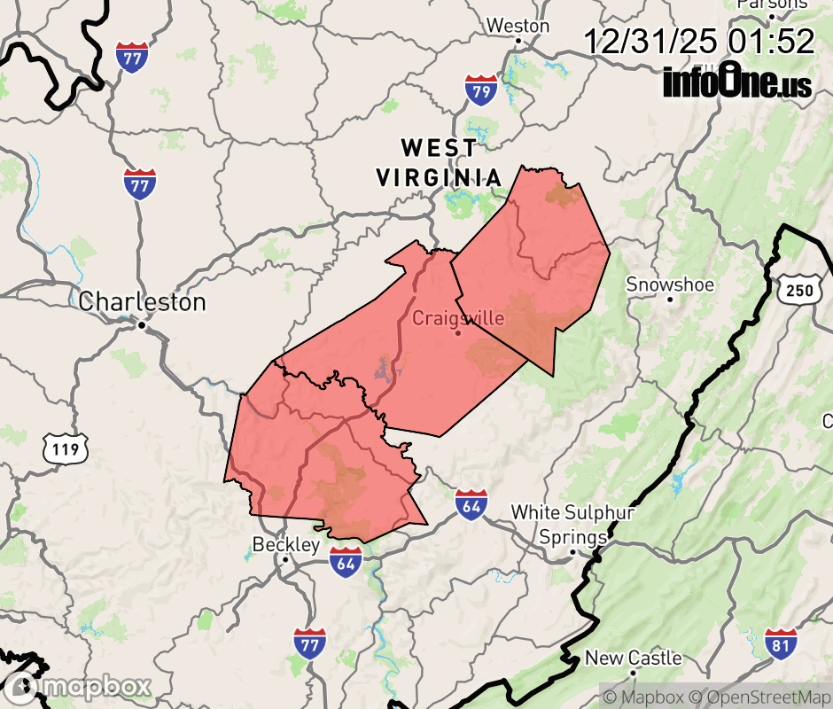 Canceled 12/31/25 9:07 AM Winter Storm Warning issued December 31 at 1:51AM EST until January 1 at 10:00AM EST by NWS Charleston WV * WHAT... Heavy snow expected. Total snow accumulations between 4 and 8 inches. Winds gusting as high as 35 mph. * WHERE... Northwest Webster, Northwest Nicholas, Southeast Fayette, and Southeast Nicholas Counties. * WHEN... From 4 PM this afternoon to 10 AM EST Thursday. * IMPACTS... Travel could be very difficult. The hazardous conditions could impact the Wednesday evening and Thursday morning commutes. ![]() |