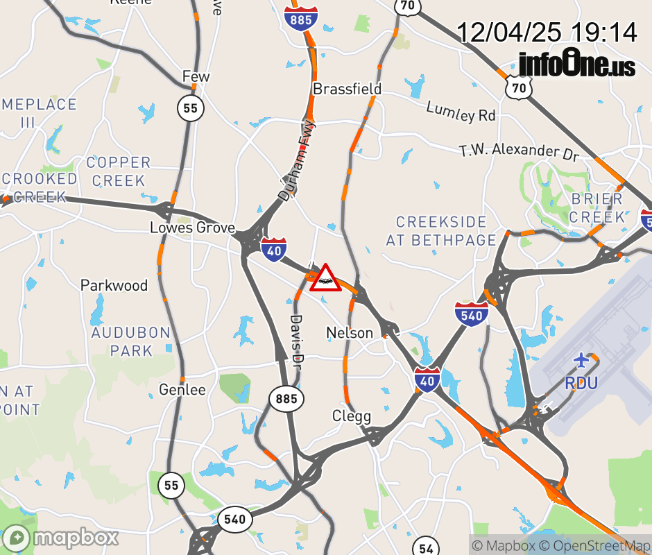 The right shoulder is closed at Exit 280 (Davis Dr). Updated: Thu 12/4/25 7:14 PM EST ![]() Updated: Thu 12/4/25 7:14 PM EST |