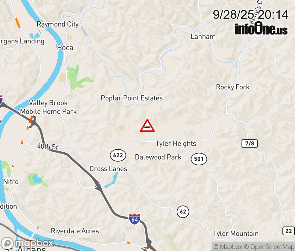 In Kanawha County there is a Vehicle Crash on CR-10 (Doc Bailey Road) & CR-7/10 (Kelly Road). ![]() |