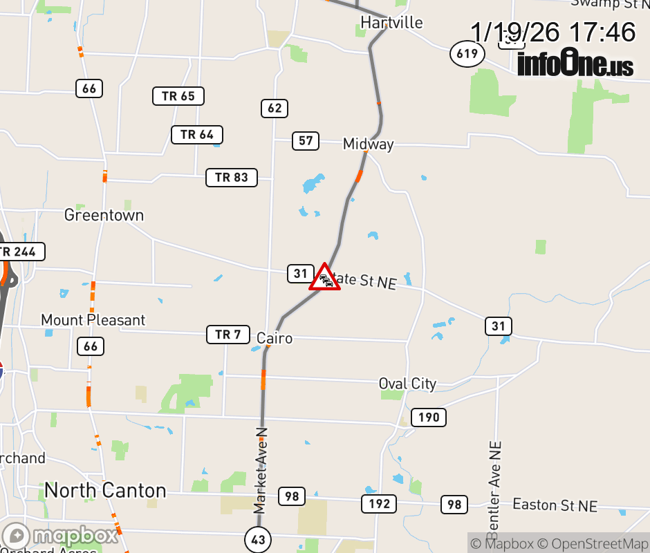 Canceled 1/19/26 7:40 PM Location: SR-43 South S, OH Traffic hazard.