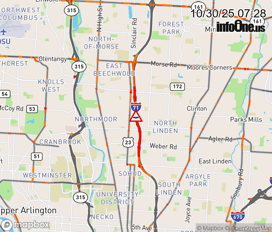 Canceled 10/30/25 7:40 AM Location: I-71 South S, OH Accident.