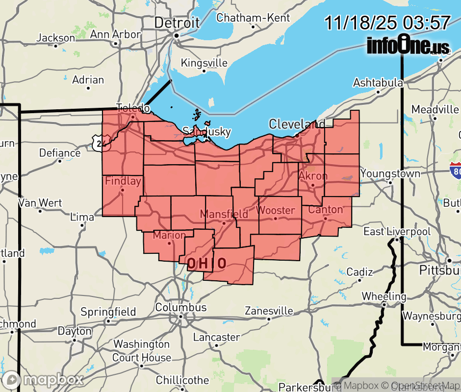 Canceled 11/18/25 11:00 AM Special Weather Statement issued November 18 at 3:55AM EST by NWS Cleveland OH A mix of light snow and sleet will move through the region this morning, resulting in untreated surfaces becoming slippery. The precipitation will changeover to all rain by about Noon as temperatures rise. Motorists should exercise caution and allow extra time to reach their destination this morning. ![]() |