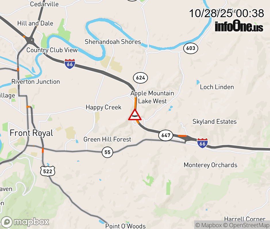 On I-66 East at mile marker 11.4 in the County of Warren, motorists can expect delays due to a vehicle crash. Updated: Tue 10/28/25 12:38 AM EDT ![]() Updated: Tue 10/28/25 12:38 AM EDT |
