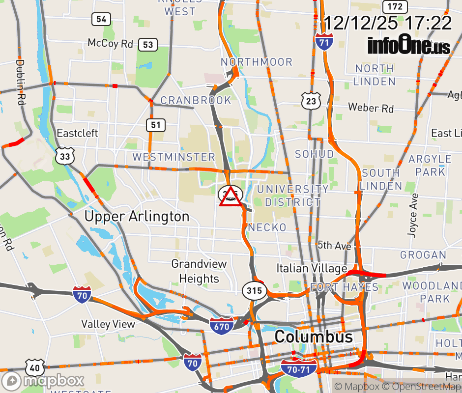 The right shoulder is blocked on SR-315 South at Kinnear Rd/Olentangy Rd, due to a crash. ![]() |