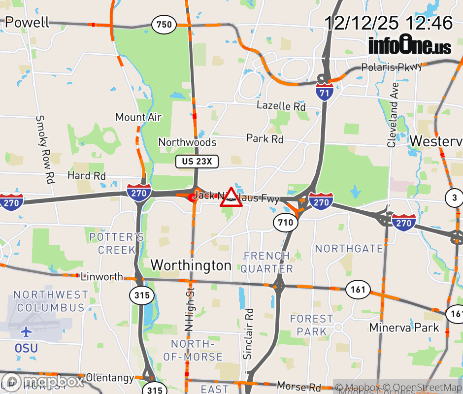 The right lane is blocked on I-270 East beyond US-23, due to a crash. Updated: Fri 12/12/25 12:46 PM EST ![]() Updated: Fri 12/12/25 12:46 PM EST |