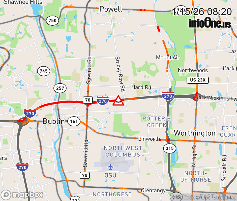 The right shoulder is blocked on I-270 East beyond Sawmill Rd, due to a crash. Updated: Thu 1/15/26 8:20 AM EST ![]() Updated: Thu 1/15/26 8:20 AM EST |