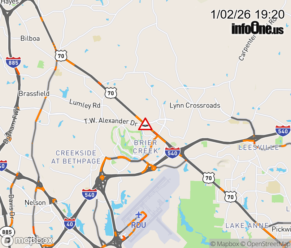 The left lane is closed at US 70 (Glenwood Ave). Updated: Fri 1/2/26 7:20 PM EST ![]() Updated: Fri 1/2/26 7:20 PM EST |