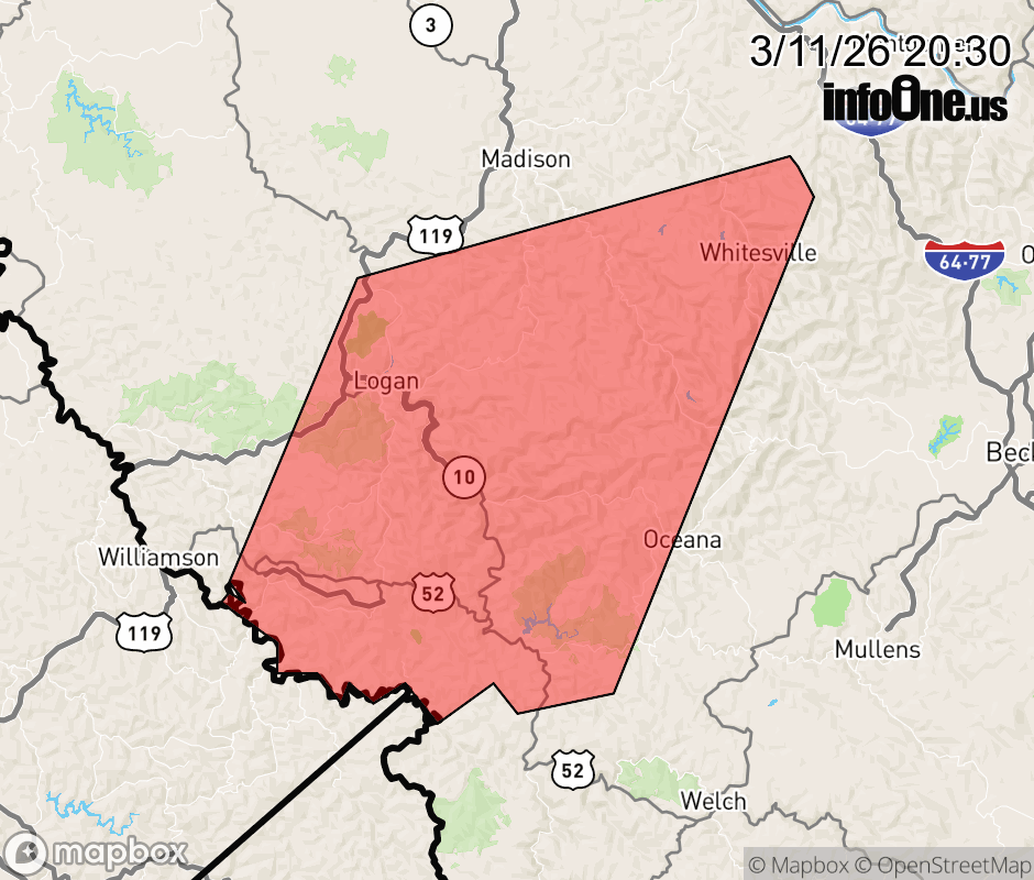 Canceled 3/11/26 9:00 PM Special Weather Statement issued March 11 at 8:29PM EDT by NWS Charleston WV At 829 PM EDT, Doppler radar was tracking strong thunderstorms along a line extending from Chief Logan State Park to Board Tree. Movement was east at 45 mph. HAZARD...Wind gusts up to 40 mph. SOURCE...Radar indicated. IMPACT...Gusty winds could knock down tree limbs and blow around unsecured objects. Locations impacted include... Logan, Oceana, Man, Hanover, Van, R.d. Bailey Lake, Gilbert Creek, Mount Gay-Shamrock, Bald Knob, Holden, Mallory, Amherstdale-Robinette, Chief Logan State Park, Red Jacket, Wharton, Hinch, Buskirk, Whitesville, Matewan, and Gilbert. This includes Route 119 between mile markers 21 and 34. ![]() |