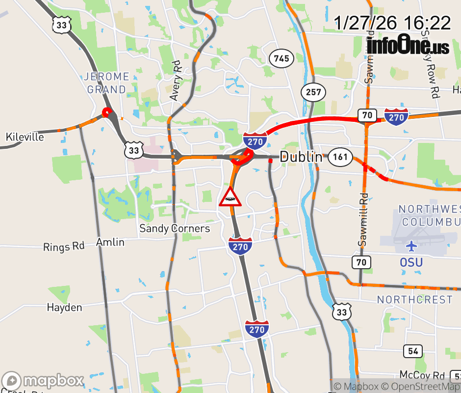 The right lane is blocked on I-270 South at US-33/SR-161, due to a crash. ![]() |