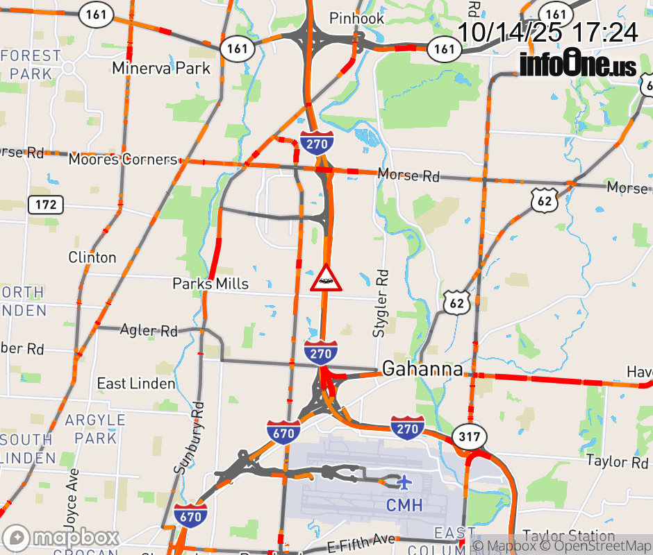 The right shoulder is blocked on I-270 North Collector at Easton Way, due to a crash. Updated: Tue 10/14/25 5:24 PM EDT ![]() Updated: Tue 10/14/25 5:24 PM EDT |