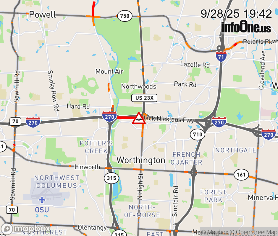 The 2 left lanes are closed on I-270 East beyond US-23, due to a crash. Updated: Sun 9/28/25 7:42 PM EDT ![]() Updated: Sun 9/28/25 7:42 PM EDT |