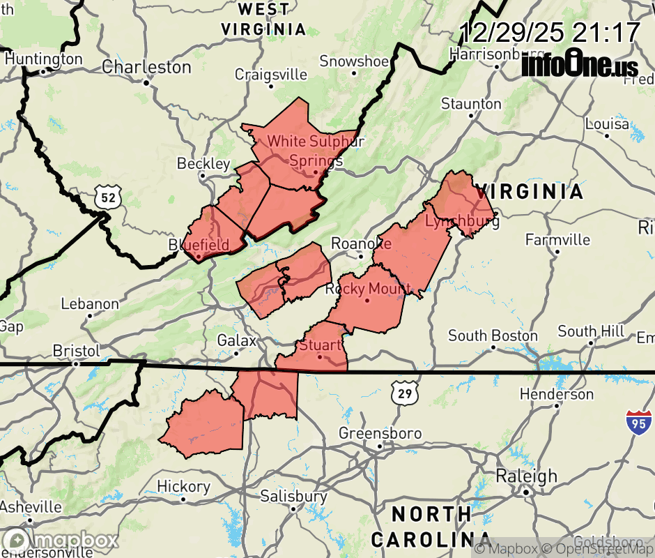 Canceled 12/30/25 6:57 AM Wind Advisory issued December 29 at 9:15PM EST until December 30 at 12:00PM EST by NWS Blacksburg VA * WHAT... Northwest winds 10 to 20 mph with gusts up to 50 mph. * WHERE... Portions of northwest North Carolina, southwest Virginia, and southeast West Virginia. * WHEN... Until noon EST Tuesday. * IMPACTS... Gusty winds will blow around unsecured objects. Tree limbs could be blown down and a few power outages may result. ![]() |