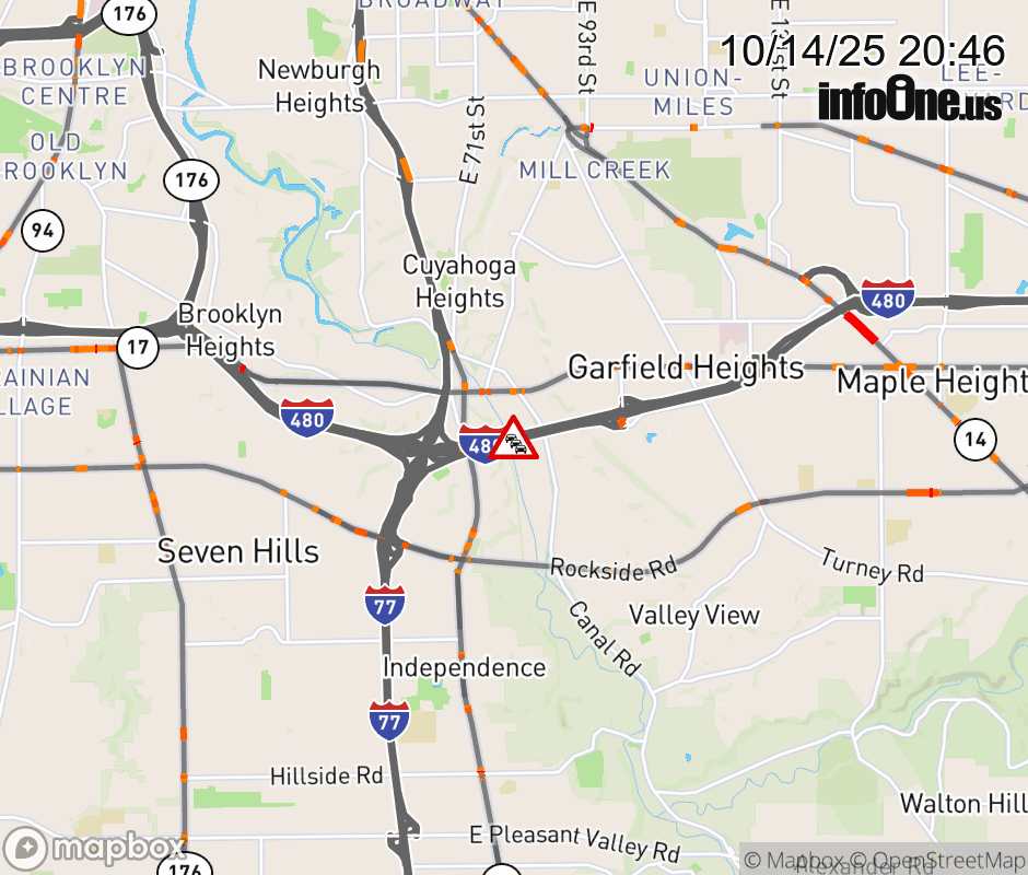 All lanes are closed on I-480 West Express beyond Transportation Blvd/E 98th St, due to repairs/maintenance.