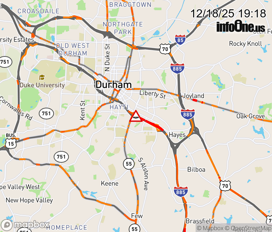 The right shoulder is closed near Exit 2 (S Alston Ave). Updated: Thu 12/18/25 7:18 PM EST ![]() Updated: Thu 12/18/25 7:18 PM EST |