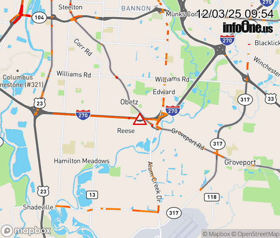 The right lane is blocked on I-270 East beyond US-23/S High St North, due to a crash. Updated: Wed 12/3/25 9:54 AM EST ![]() Updated: Wed 12/3/25 9:54 AM EST |
