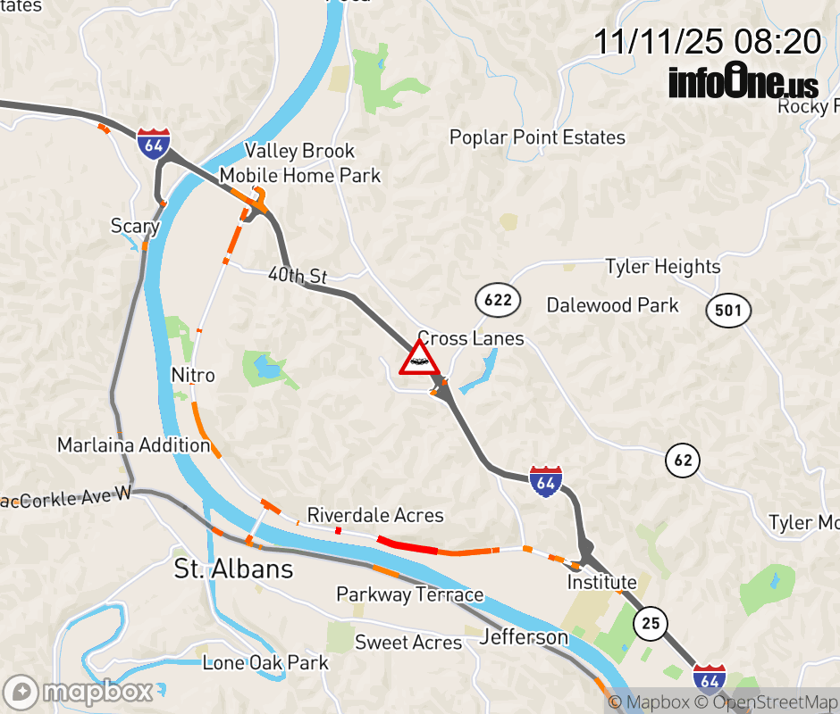 Canceled 11/11/25 9:58 AM Location: I-64 at MM 47.0, WV Accident.