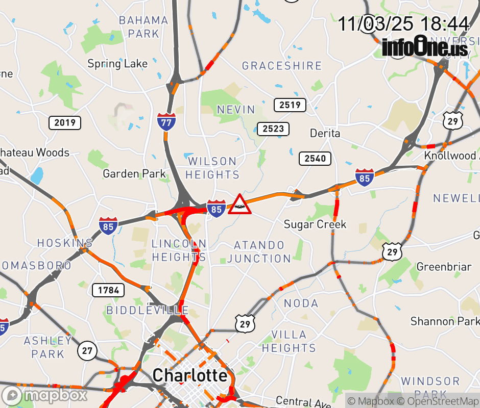 The 2nd to right lane is closed past Exit 39 (Statesville Ave). Updated: Mon 11/3/25 6:44 PM EST ![]() Updated: Mon 11/3/25 6:44 PM EST |