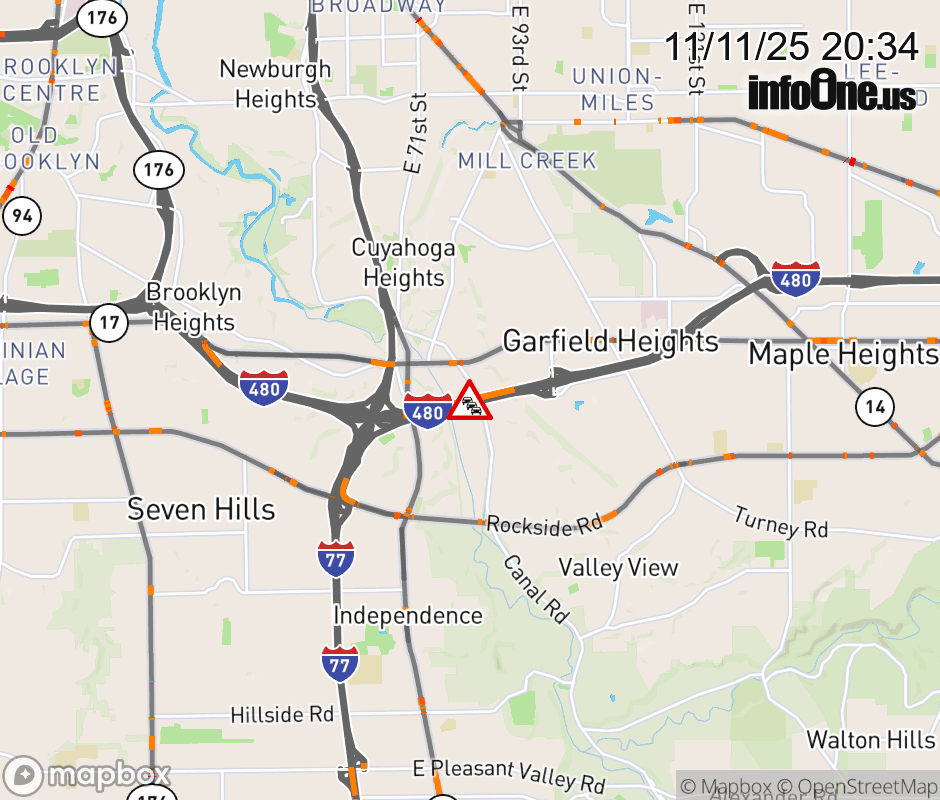 The outer lanes are blocked on I-480 West beyond Transportation Blvd/E 98th St, due to repairs/maintenance. ![]() |