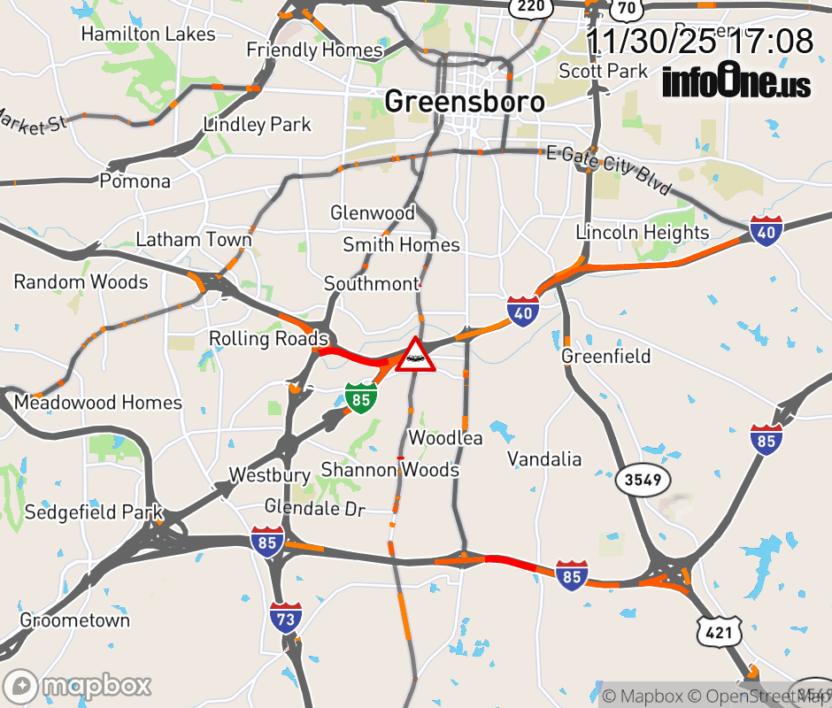 The left lane is closed at Exit 220 (Randleman Rd). ![]() |