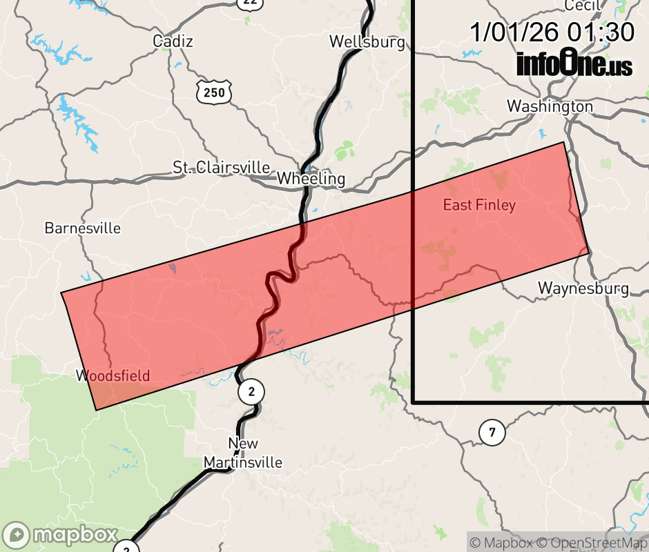 Canceled 1/1/26 1:52 AM Snow Squall Warning issued January 1 at 1:29AM EST until January 1 at 2:00AM EST by NWS Pittsburgh PA At 129 AM EST, a dangerous snow squall was located along a line from 7 miles southeast of East Washington to 7 miles northwest of Woodsfield, or along a line from 7 miles southeast of Washington to 7 miles northwest of Woodsfield, moving south at 20 mph. HAZARD...Intense bursts of heavy snow and gusty winds leading to blowing snow and rapidly falling visibility. Wind gusts up to 35 mph. SOURCE...Radar indicated. IMPACT...Travel will become difficult and potentially dangerous within minutes. Locations impacted include... Moundsville, Bellaire, Woodsfield, Shadyside, McMechen, Powhatan Point, Glen Dale, Benwood, West Finley, Beallsville, Clarington, Jerusalem, Wilson, Alledonia, Cameron, Nineveh, Somerton, Amity, Miltonsburg and Grove Oak. This includes Interstate 79 in Pennsylvania between mile markers 20 and 22. ![]() |