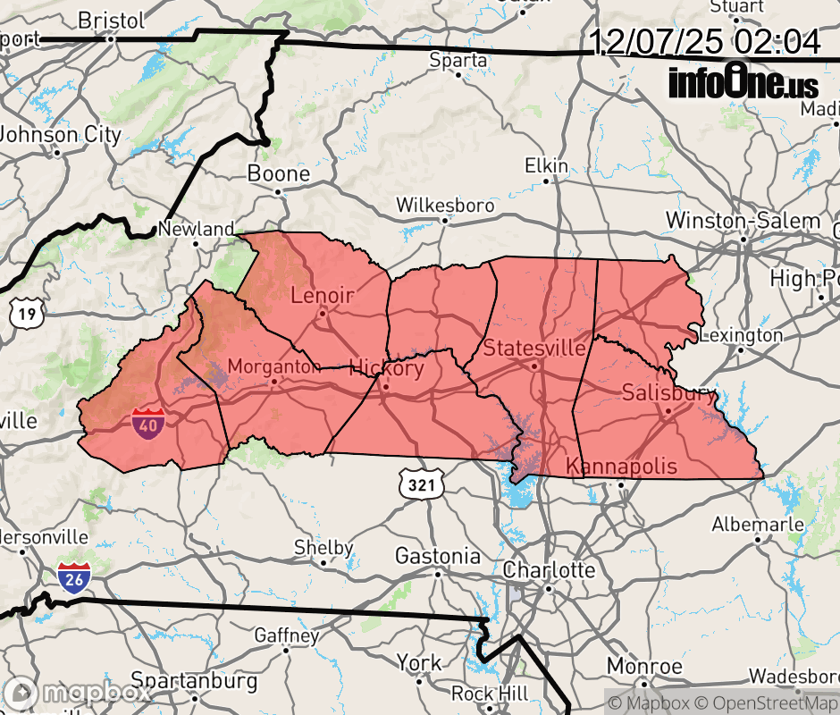 Canceled 12/7/25 4:07 AM Dense Fog Advisory issued December 7 at 2:02AM EST until December 7 at 10:00AM EST by NWS Greenville-Spartanburg SC * WHAT... Visibility one quarter mile or less in dense fog. * WHERE... The Northern Foothills and Northwest Piedmont of North Carolina. * WHEN... Until 10 AM EST this morning. * IMPACTS... Low visibility could make driving hazardous. * ADDITIONAL DETAILS... Patchy freezing fog may also occur late tonight through early Sunday morning. Some bridges and overpasses may become slippery. ![]() |