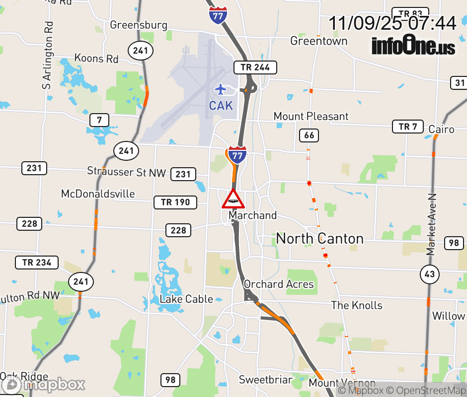 The left shoulder is blocked on I-77 South beyond Shuffel St, due to a crash. Updated: Sun 11/9/25 7:44 AM EST ![]() Updated: Sun 11/9/25 7:44 AM EST |