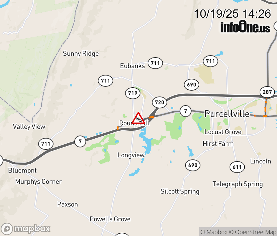 On Rt. 1303 in the County of Loudoun, in the vicinity of N Bridge St; Rt. 1304N/S (Loudoun County), motorists can expect delays due to weather. The east through lanes are closed. The west through lanes are closed. ![]() |